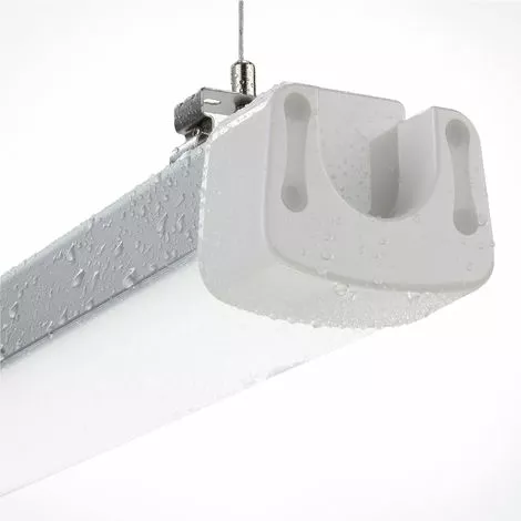 Die LED-Wannenleuchte kann entweder direkt an einer geschlossenen Raumdecke montiert oder aber durch das mitgelieferte Befestigungsmaterial auf die gewünschte Höhe abgehängt werden. Dank der durch ein Dichtungsgummi geschützten Schrauben ist die Leuchte auch für Feuchträume mit einer Luftfeuchtigkeit von bis zu 95 % geeignet. Mit einem Betriebstemperaturbereich von -20 °C bis +60 °C trotzt sie darüber hinaus auch extremen Wetterbedingungen und ist ganzjährig im überdachten Außenbereich einsetzbar.