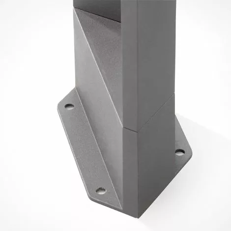 Die Wegeleuchte verbraucht nur 10 kWh in 1000 Betriebsstunden, die hochwertigen LEDs haben eine Lebensdauer von mehr als 30 000 Stunden. Dank ihrer hochwertigen Ausführung ist die Leuchte wetterfest und auch bei extremeren Temperaturen ganzjährig im Außenbereich einsetzbar. Für einen kippsicheren Stand lässt sie sich über eine ausgestellte Bodenplatte mit vier Schrauben auf allen waagerechten, festen Untergründen montieren und an das reguläre Stromnetz anschließen.