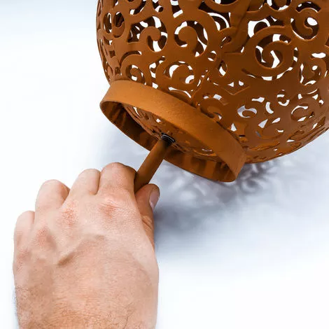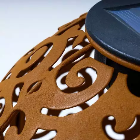 Samira glänzt mit Ihrem matten, rostfarbenen Korpus aus Metall und ist so bestens für den Ganzjahreseinsatz im Außenbereich geeignet.