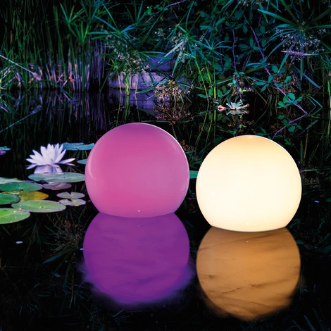 Für den Außeneinsatz bringen die zwei »Multi Color«-Leuchtkugeln ideale Voraussetzungen mit: Schlagfest und bestens abgedichtet, überstehen sie Wind und Wetter.