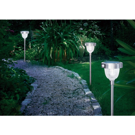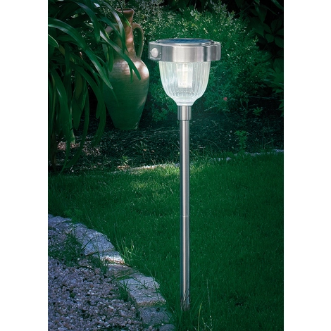 Helles Licht nur dann, wenn es wirklich benötigt wird! Bei Dunkelheit leuchtet die Lampe als Orientierungsleuchte mit geringer Leuchtstärke, beim Erkennen einer Bewegung (Wärmeveränderung) leuchten die 3 eingebauten Nichia LEDs für ca. 40 Sek. mit ihrer vollen Leuchtkraft. Durch diese Eigenschaft wird der Wirkungsgrad der Leuchte wesentlich erhöht, da nur bei Bedarf das helle Licht leuchtet. Robustes Edelstahlgehäuse mit eingebauten kristallinen Solarmodul und 120° Bewegungssensor.