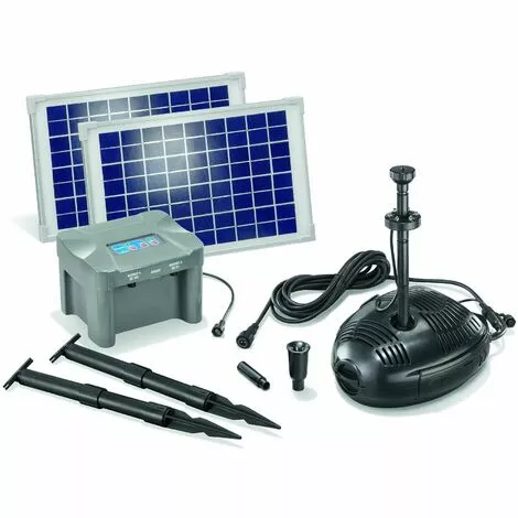 Das Pumpensystem ist in einem Teich bzw. zur Wasserversorgung eines Quellsteins gleichermaßen einsetzbar. Die Solarmodule erzeugen bei vollem Sonnenschein im Sommer genügend Energie um die Pumpe mit Licht zu betreiben und gleichzeitig den Akku zu laden. Das Pumpensystem ist mit zwei 10 W Solarmodulen ausgestattet und kann bei Bedarf um weiter Solarmodule erweitert werden.