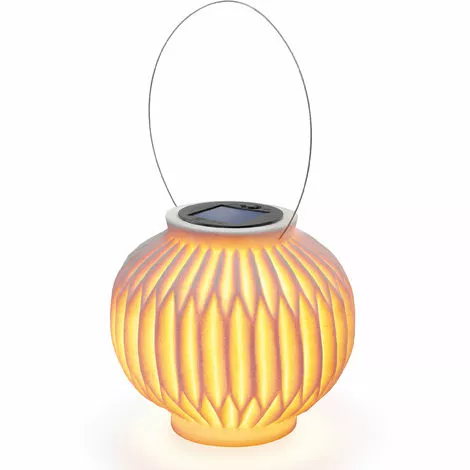 Die Solarleuchte ist aufgrund ihrer handlichen Größe perfekt integrier- und einsetzbar. Ob im Garten ins Blumenbeet gestellt, an einem Baum oder Strauch hängend befestigt oder einfach auf den Tisch gestellt. Der Kreativität sind keine Grenzen gesetzt. Doch auch wenn sie handlich ist, lässt die Verarbeitung und Funktionalität keine Wünsche offen. So ist die Solarleuchte »Ibiza« aus Kunstharz mit gemahlenen Sandstein gepudert. Dies macht jede Leuchte zu einem Unikat und dient auch der Wetterfestigkeit. Die Solarleuchte wird mit vier warmweißen LEDs betrieben.