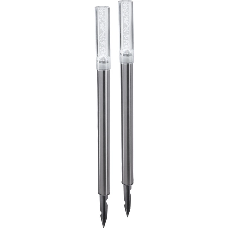 - 2 betriebsfertige Leuchten inklusive Akkus (Kopf, Rohr und Erdspieß müssen lediglich zusammengesteckt und der Akku-Schutzstreifen entfernt werden)