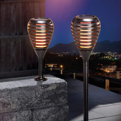Ob Gartenparty, Grillfest oder ein ruhiger Abend zu Zweit. Diese Solarfackeln sind überall und sicher ohne Brandgefahr einsetzbar! Die 96 LEDs in jeder Solarfackel erzeugen eine lebendige Flamme! Dank des kabellosen Solarbetriebs sind Sie bei der Positionierung völlig ungebunden! Sie können diese ungefährlich zwischen Sträuchern in das Erdreich stecken oder mit Hilfe der mitgelieferten Montageplatte auf einer Mauer befestigen.