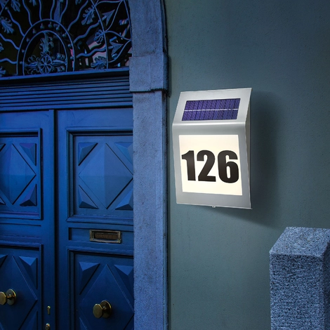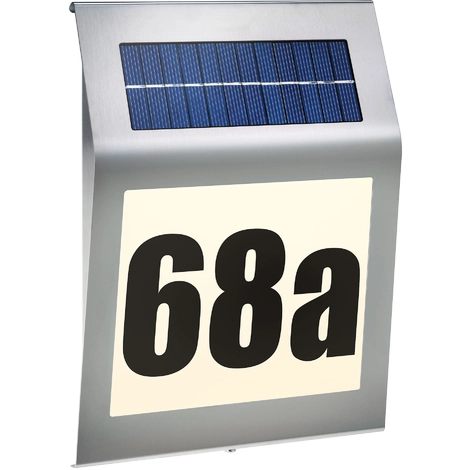 Im Lieferumfang sind die Ziffern (1 – 999) und Buchstaben (a – f) enthalten und müssen nur noch als individuelle Hausnummer auf die Leuchtfläche aufgeklebt werden. Das unaufdringliche Design der Hausnummernleuchte weist Ihr Haus schnell und zuverlässig als das Ihre aus, lenkt aber als pragmatischer Gebrauchsgegenstand nicht von Ihrer weiteren kreativen Fassaden- und Gartengestaltung ab.