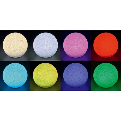 Auf Wunsch kann durch drücken eine Schalters an der Unterseite der Kugel eine Leuchtfarbe als Dauerlicht gewählt werden. Das vorhandene Kabel mit 5m Länge kann durch Verlängerungskabel 101740 (nicht im Lieferumfang enthalten) flexibel verlängert werden.