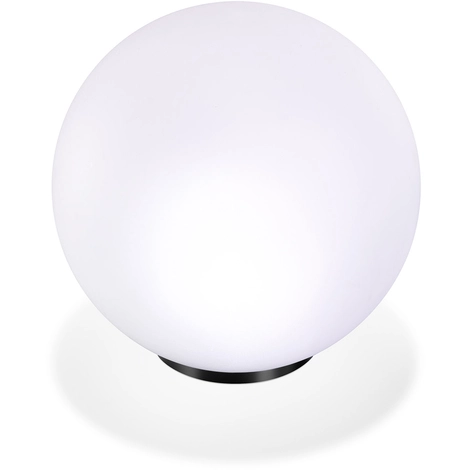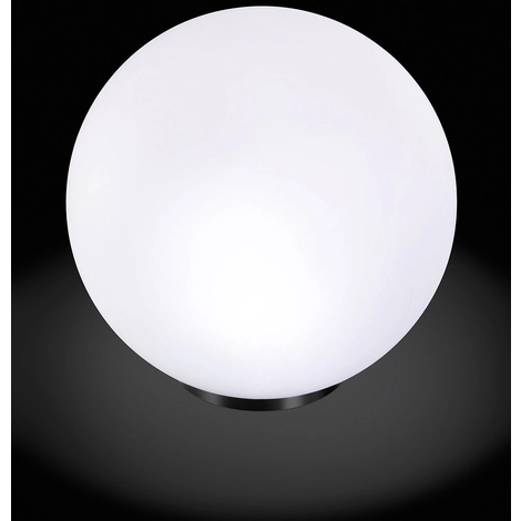 Formal ist diese 30 Zentimeter große Leuchtkugel mit Solarbetrieb denkbar reduziert: Nichts stört ihre klare Kugelkontur, der Blick fällt auf eine perfekt wirkende Sphäre.