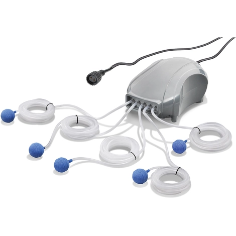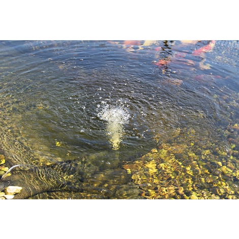 Die Lieferung erfolgt einsatzfertig mit Solarmodul, Teichbelüfter mit 5 x 3 m Schläuche und 5 Sprudelsteinen.