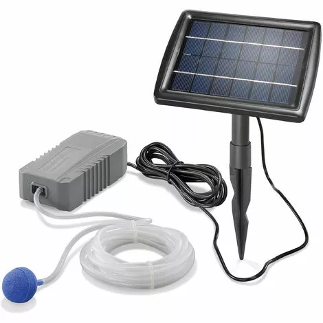 Die Installation des Solar-Teichbelüftersets ist denkbar einfach. Einfach Schlauch und Sprudelstein am Auslass der Pumpe anstecken und an gewünschter Stelle im Gartenteich platzieren. Die Pumpe selbst stellen Sie bitte wassergeschützt auf.