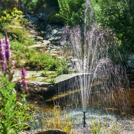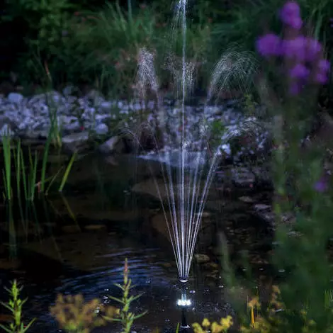 Die Akkubox hat 2 schaltbare Ausgänge. Die Pumpe wird an dem 18 V Ausgang angeschlossen. Dieser Ausgang kann im Timer-Modus betrieben werden. Die bedeutet dass die Pumpe jede Stunde für ca. 10 Min. eingeschaltet wird. An einem weiteren schaltbaren 6V-Ausgang kann z.B. ein Teichbelüfter, Pumpe oder Beleuchtung angeschlossen werden. Beiliegend hochwertige kollektorlose Pumpe mit Trockenlauf- und Überlastungsschutz und langlebiger LED Beleuchtung. Es können mit den beiliegenden 4 Steigrohren und 2 unterschiedlichen Sprinklern (3 stufige Fontäne und Wasserglocke) unterschiedliche Fontänen erzeugt werden. Steckerfertig, in minutenschnelle aufgebaut.