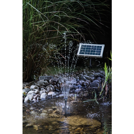 Bezaubernde Wasserspiele und Lichteffekte in einem – ganz ohne Stromkosten: Das Pumpensystem Solar Fountain 5/160 LED bietet in Ihrem Gartenteich auch nach Sonnenuntergang noch dekorative Wasserspiele und beleuchtet sie zusätzlich per LED-Licht. Ein Netzanschluss ist überflüssig – Akku-Aufladung durch Sonnenlicht genügt.