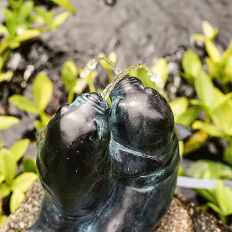 Die wahre Schönheit unserer Seehunde zeigt sich jedoch erst, sobald die Pumpe ihre Arbeit aufnimmt. So kombiniert, ergibt sich eine wahre Wasserspiel-Symphonie und Ihr Garten lädt Sie zum entspannten Beisammen sein ein.